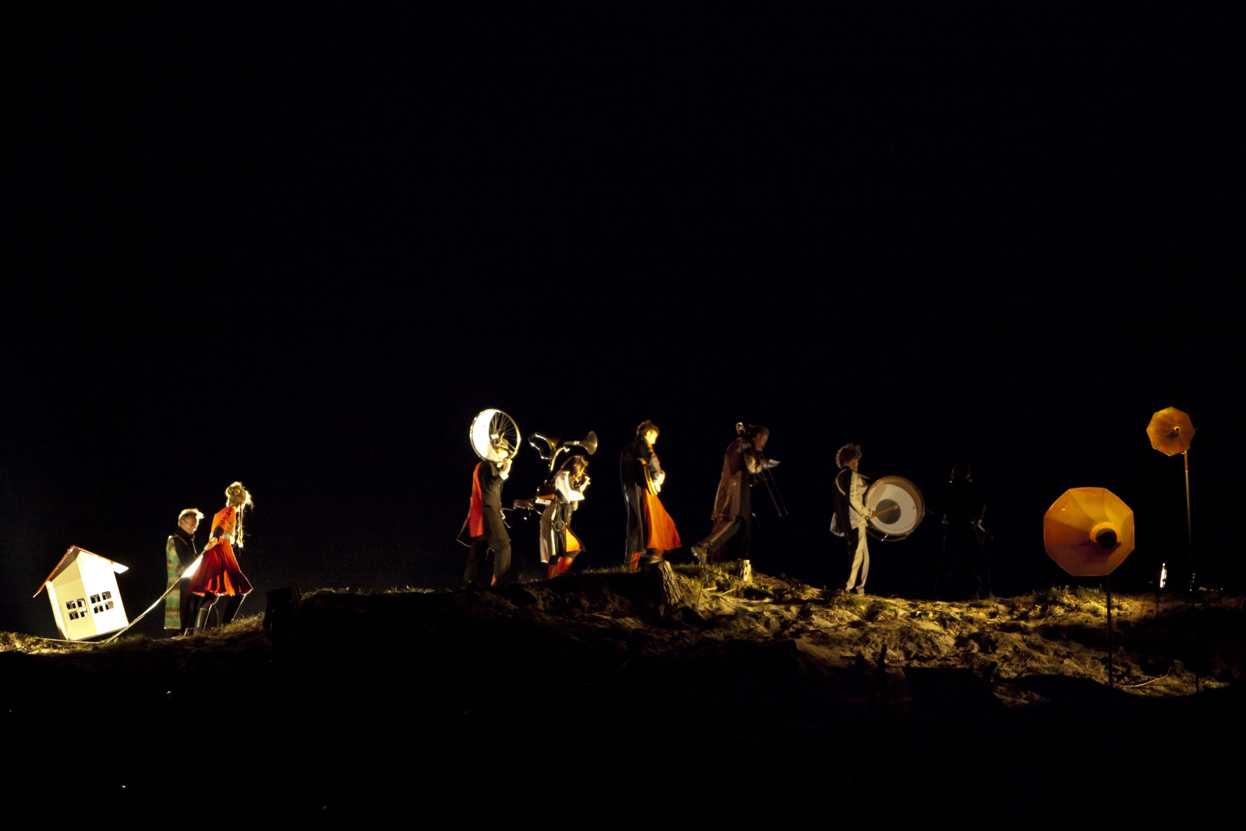 Een jaar later stond Groupe Zur op Arjensdune met Horizone. Een voorstelling in het duister die bleef hangen, al is ze moeilijk in woorden te vatten. De lichten over het duin, de kleine huisjes, de muziek – overal gebeurde iets. Als toeschouwer vergat je zelfs de regen.