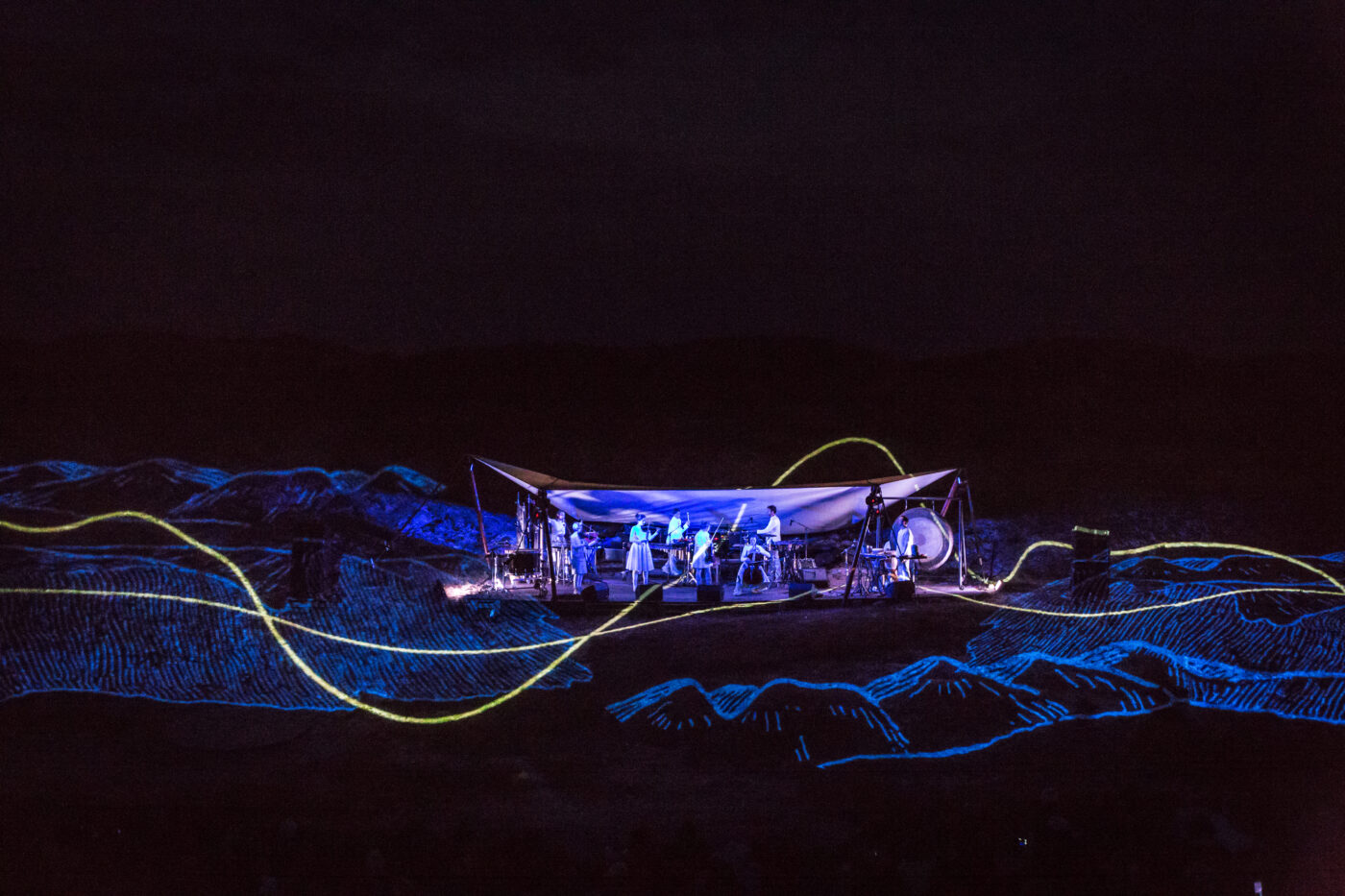 Ook in 2016 bracht Arjensdune een visuele roes. Tijdens Planetary Sunrise speelde Ragazze Quartet, Kapok en Slagwerk Den Haag alsof hun leven ervan afhing, terwijl videokunstenaars van het Blauwe Uur met lichtlijnen het duin tot leven wekten bij zonsondergang. Tot op één avond het aggregaat stilviel. Niet bijgevuld. Het publiek sprong bij en verlichtte het duin met telefoons. Dat is Oerol: verbinden.
