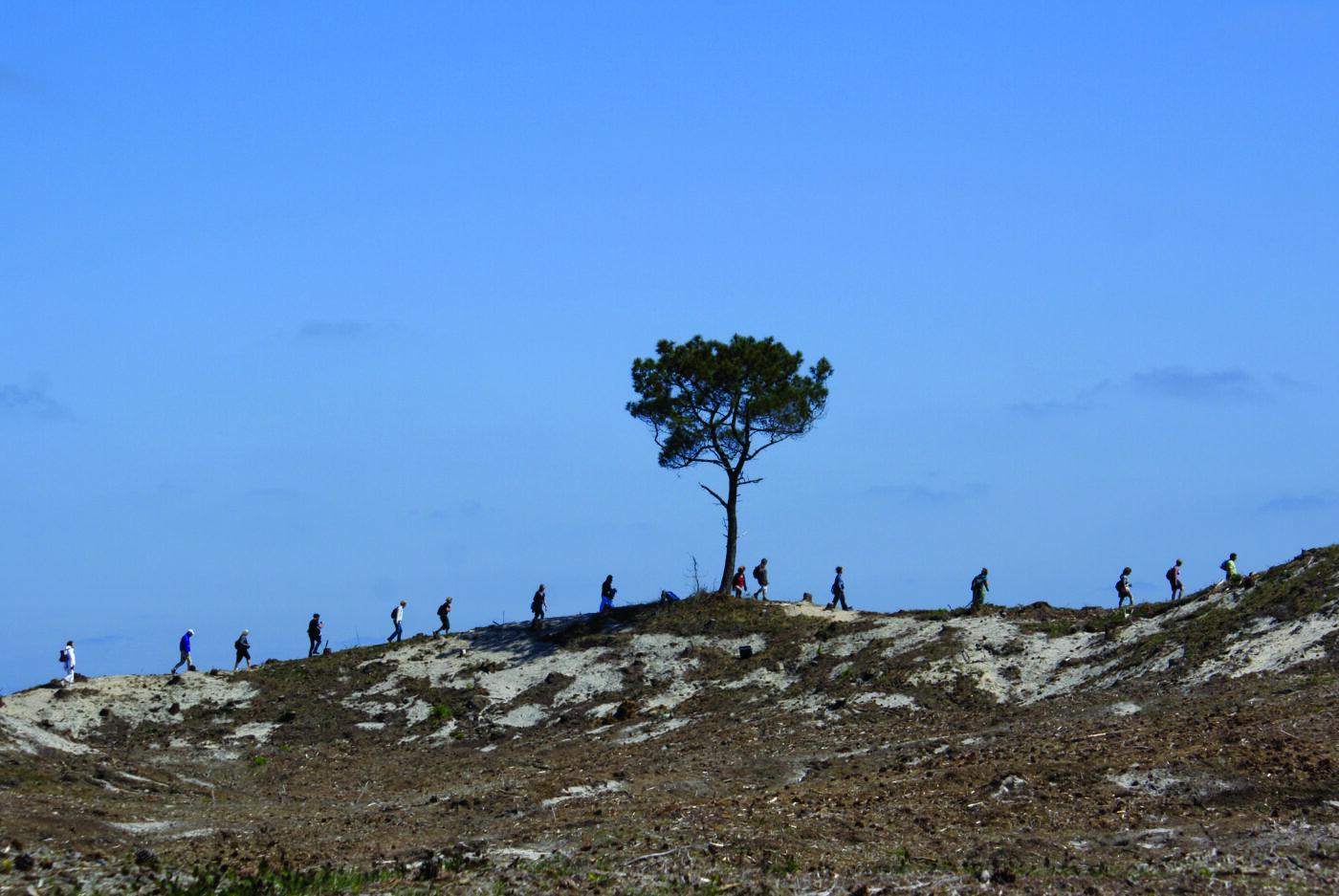 In de ochtendgloren voltrok zich datzelfde gevoel van verbondenheid. Om vijf uur ’s ochtends dansten vijftig professionals en amateurs onder leiding van Sharon Fridman NIDO/RIZOMA: een ode aan het duinlandschap en aan de vraag wat jouw plek is in het grotere geheel. De voorstelling eindigde met 250 vroege vogels, hand in hand verbonden – en een kop thee op Arjensdune.